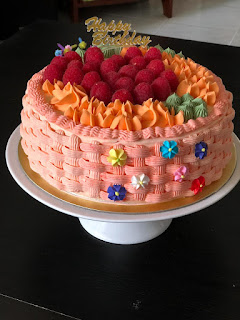 This is a 10 inch cake. Made without using any oil and butter but yet produces a light and fluffy cake with a hint of lemon zest in it.
